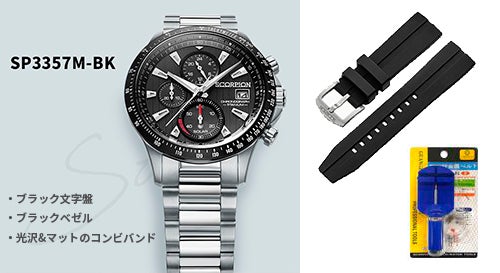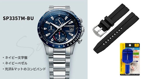 同梱内容:スコーピオン オールチタンソーラーウォッチ V2(型番:SP3357M)、付け替え用シリコンバンド、バンド長さ調整工具、保証書