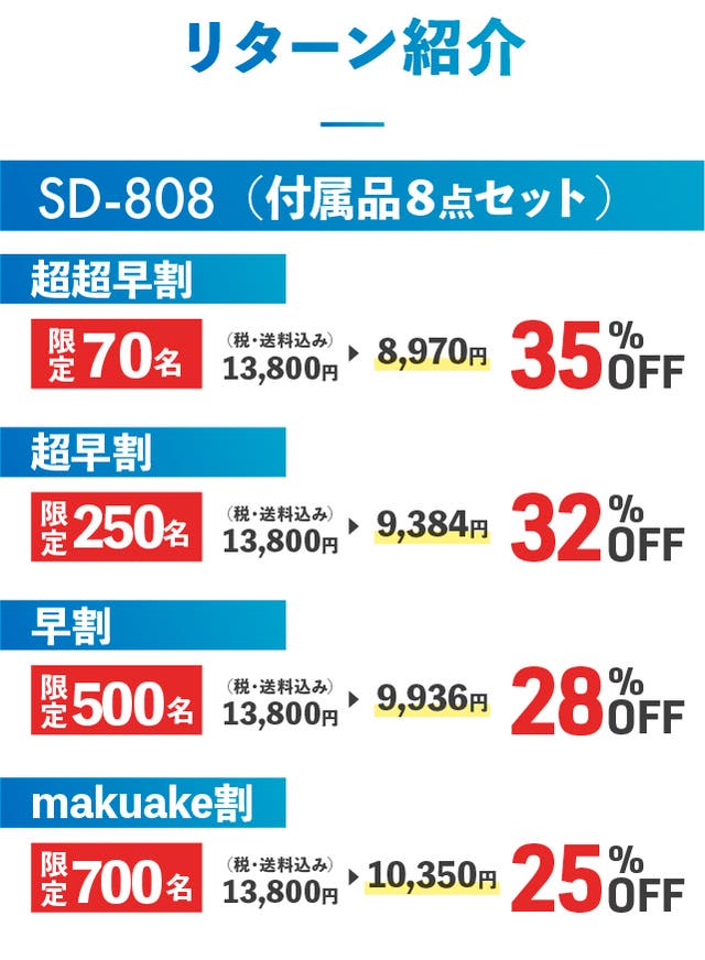 700名限定【マクアケ割】SD-808本体(付属品8点セット)×1個