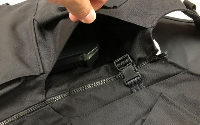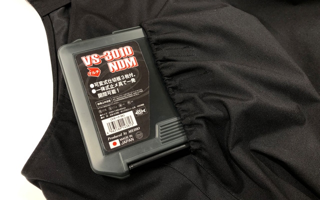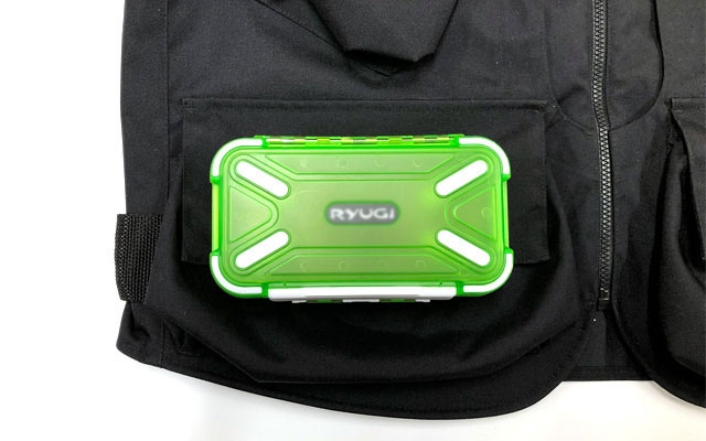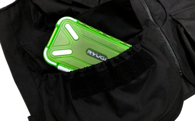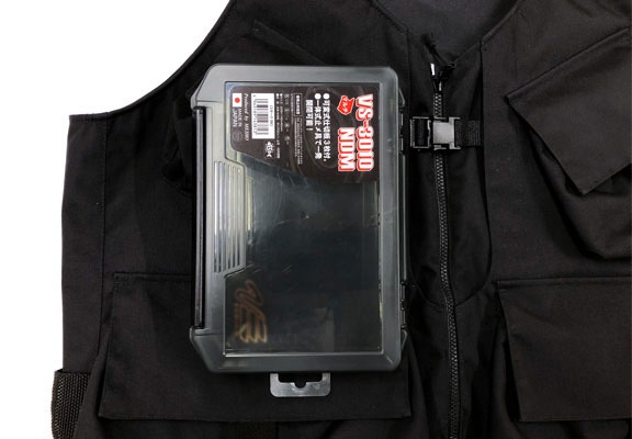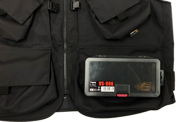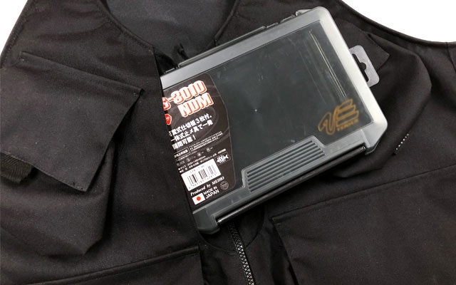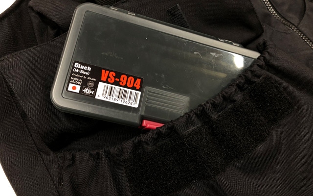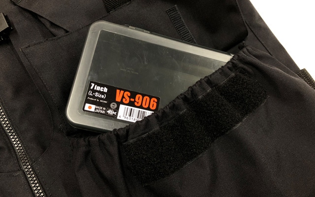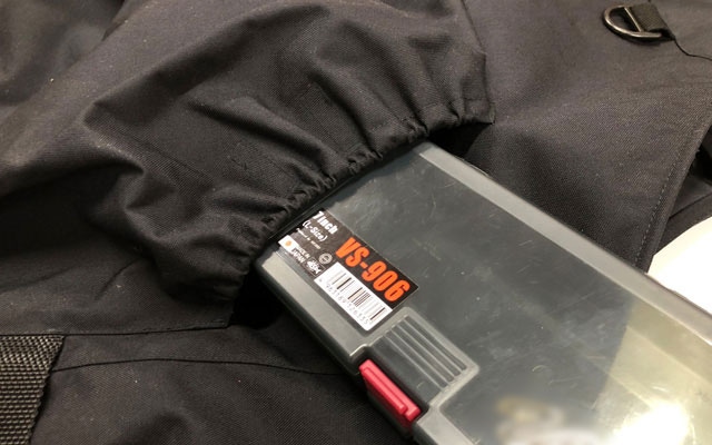 深いポケットにすることで大型のタックルケースもすっぽり入ります。