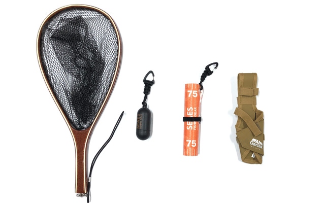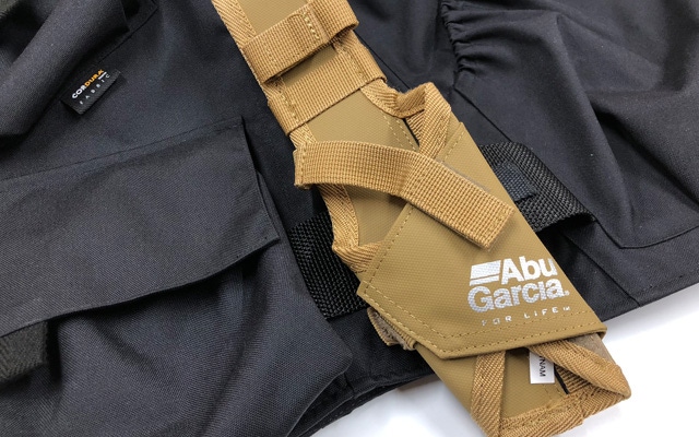 ロッドホルダーやフィッシュグリップ、フィッシングメジャーなどの小物を引っ掛けやすいような仕様にしています。針タイプのラインカッターもつけれます。