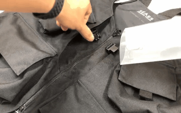 左右上部の胸ポケットは小型のケースがすっぽり入るような設計。
