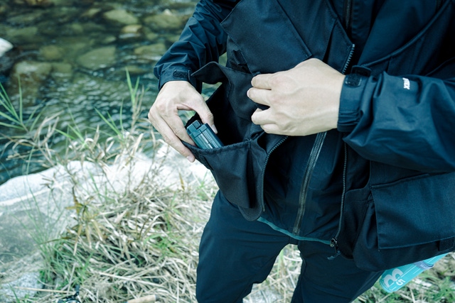 片手で操作することが多い釣りにおいてポケットの開閉が煩わしさの原因にならないようにしました。
