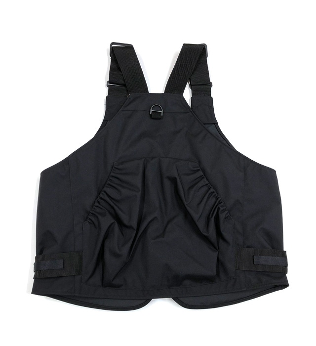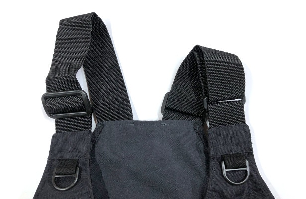 重ね着してオールシーズン着用できるように肩のアジャスターで調整できるようにしています。