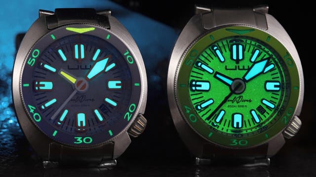 プロ仕様のダイバーズ・ウォッチでは、暗くて深い水中でも視認できることが重要です。