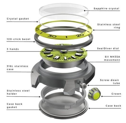 SEAL DIVERに搭載された自動巻きムーブメントは日本製『SII NH35A』。