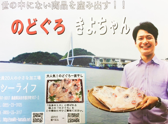 1,地元水産ブランド「どんちっち」を広めるため、2006年にシーライフを創業。のどぐろを使った加工品に注目し、次々と新しい商品を作る一方で地元企業発展の為にふるさと納税にも協力的な活動を行い、全国の寄付者へ沢山の返礼品を送っている。常にチャレンジ・行動することに意欲的で会社のモットーにもなっている。