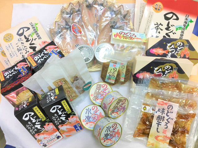 ・10000円・・・試作品缶詰各1缶ずつ、のどぐろふりかけ、のどぐろ茶漬け、のどぐろひつまぶし、のどぐろせんべい