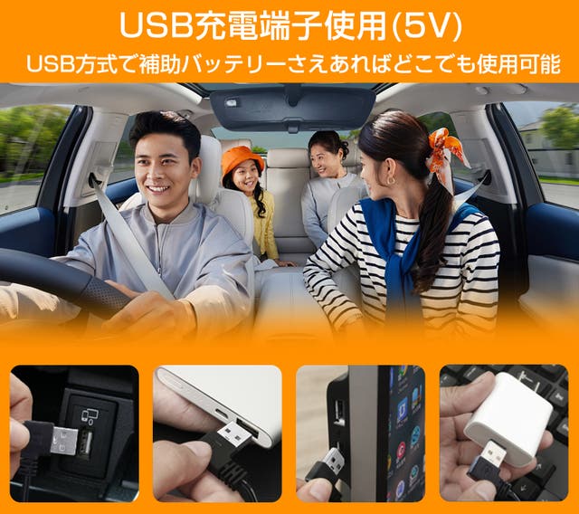 ※USB-ACアダプター·パソコン·モバイルバッテリーは別売です別途ご用意ください。