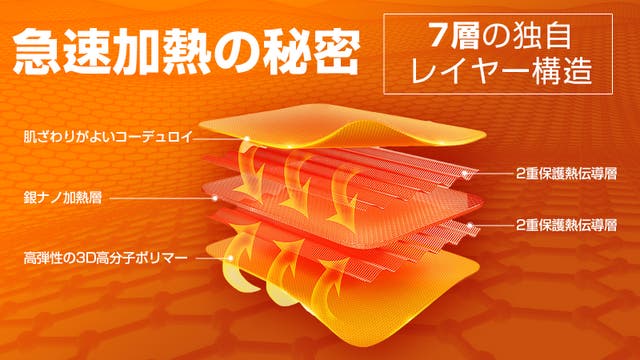 中に銀ナノ粒子を利用した加熱技術を用いしております。通常の電熱線シートヒーターとは異なり、銀ナノテクノロジーによる効率的な加熱が特徴です。