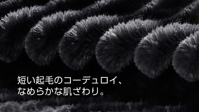 座面は肌触りがよくあったかい生地を採用しており、柔らかコーデュロイ仕上げ。心地よいあったかさと肌触りでぽかぽか~