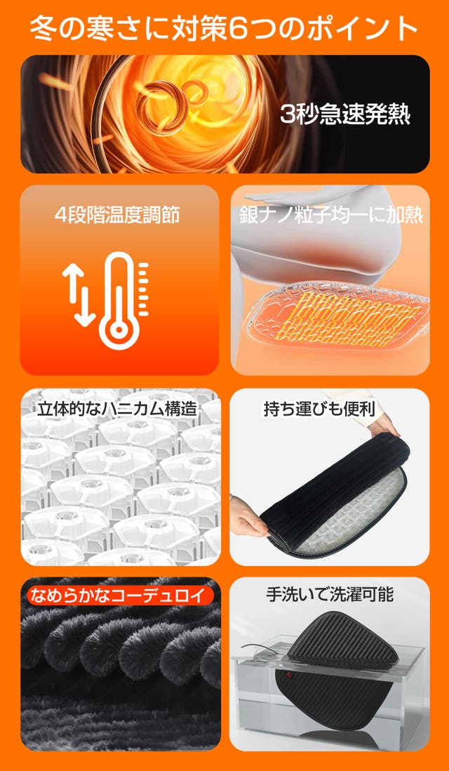 設定温度まで一気に上昇!椅子に置くだけでいつでも温かく過ごせるシートヒーター、暖房よりも早く暖まるので一緒に使うのもおすすめです。