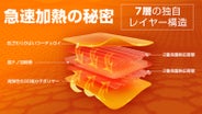 多層熱伝導素材、熱を全体にバランス良く届き、シート全体がムラなく均一に加熱されます。