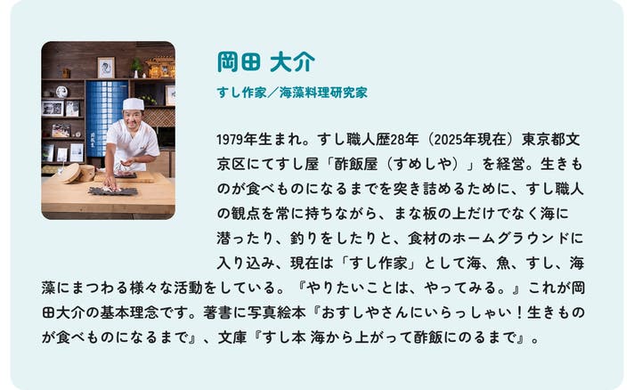大人気すし作家 岡田大介の視点から、“海藻の深み”を探求できる特別なパス。
