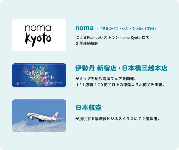 また、取り組みを続けるなかで、海藻の新しい可能性に共感してくださる方が増え、日本テレビ系列「満天☆青空レストラン」や「カンブリア宮殿」など、様々なメディアで取り上げていただきました。