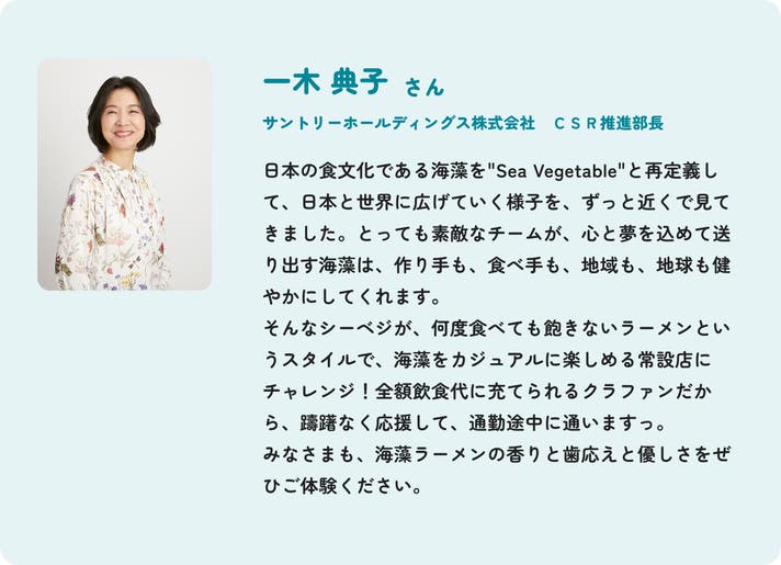 「こんなに美味しいの?」「こんなに種類があるの?」という驚きの言葉と笑顔に出会いました。もっと多くの人に、もっと日常で、海藻を楽しんでもらうきっかけを作りたい。