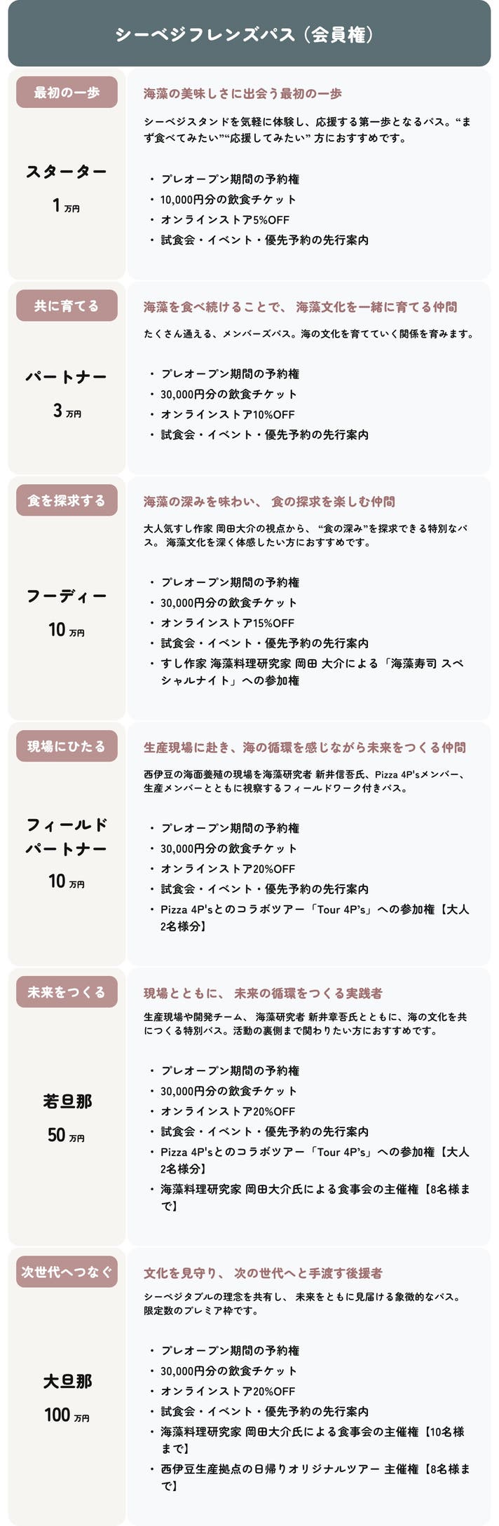 シーベジタブルの理念を共有し、未来をともに見届ける象徴的なパス。限定数のプレミア枠です。