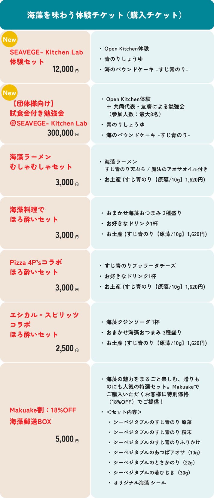 → 海藻を味わう体験チケット | Makuake割:18%OFF 海藻郵送BOX