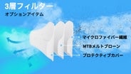 3種の繊維マイクロファイバー繊維(繊維質フィルタリング)、メルトブローン(静電気フィルタリング・静電気繊維)、プロテクティブカバー (静電気フィルタリング・超極細糸不織布繊維)の3層構造で空気中の微粒子の侵入を防ぎます。
