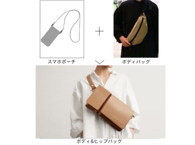 牛革ボディ&ヒップバッグは、「スマホポーチ」と「ボディバッグ」を1つにした、機能的なシンプルデザインです。
