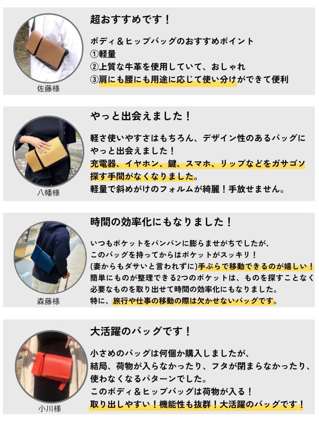 牛革Body&Hipbagのご愛用者様からは