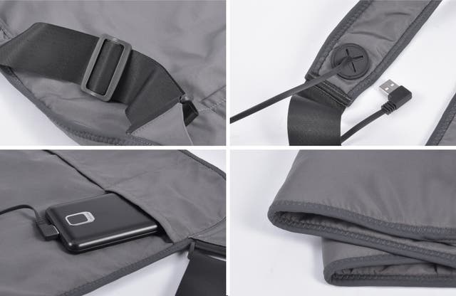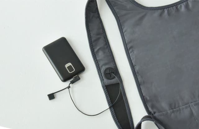 モバイルバッテリーも薄いから、背中に入れても違和感なく着ることができます。