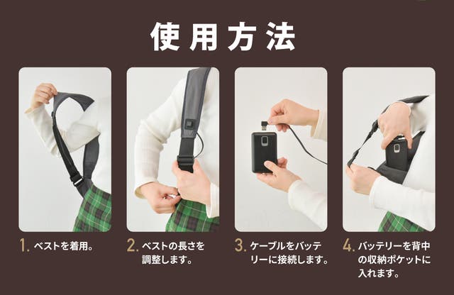 今回は、ECサイト楽天市場ランキング1位を獲得している「エネタンポ」シリーズの技術を使用。背面部に熱源ヒーターを3か所搭載することによって、全身をぽかぽかと温めてくれます。