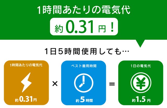 ・1日5時間使用して、1日あたりの電気料金約1.5円。