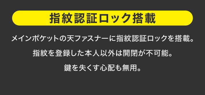 - 【背中に隠れるシークレットポケット】安心セキュリティ。指紋は管理者以外に最大9人分まで登録可能