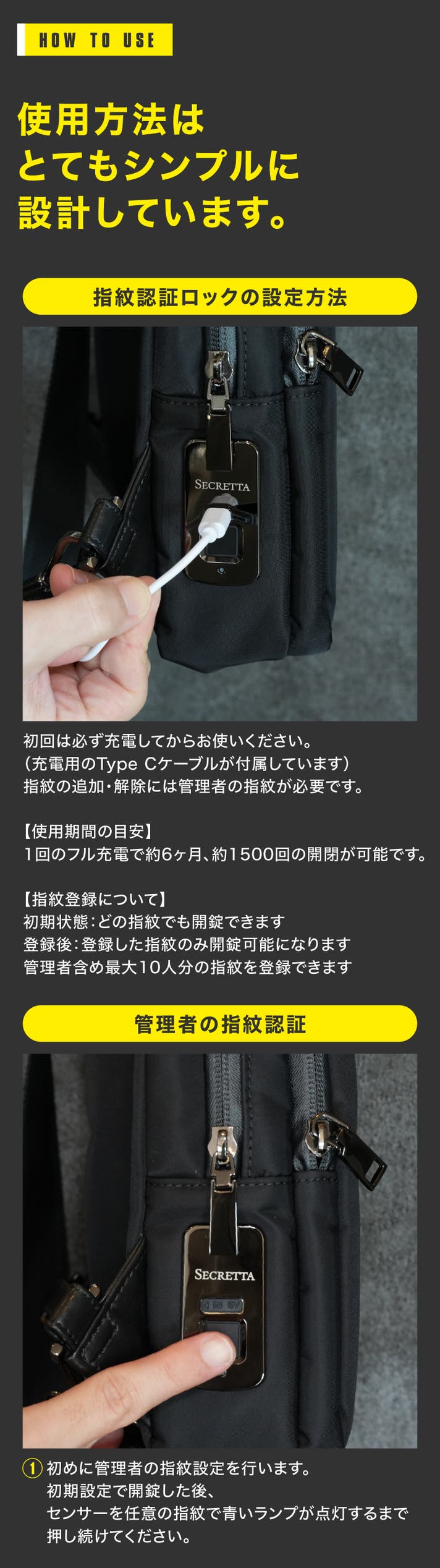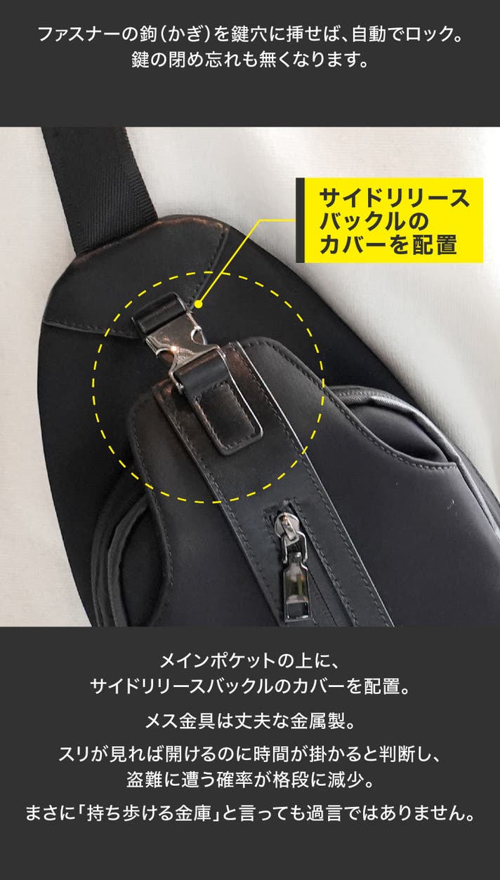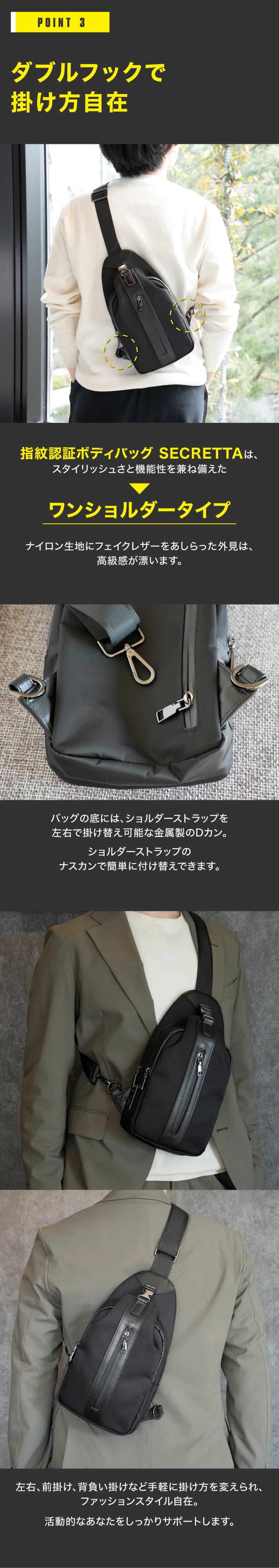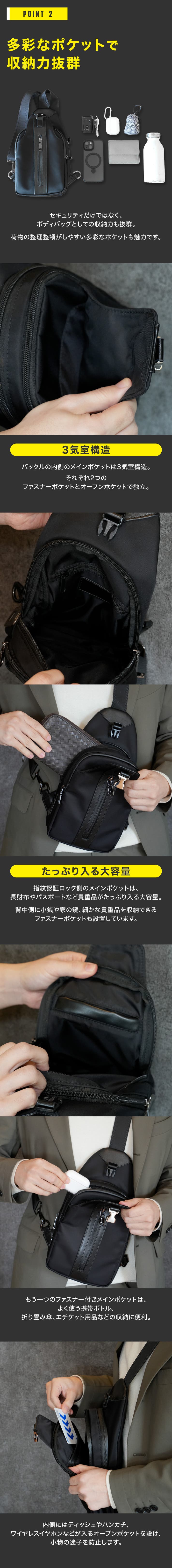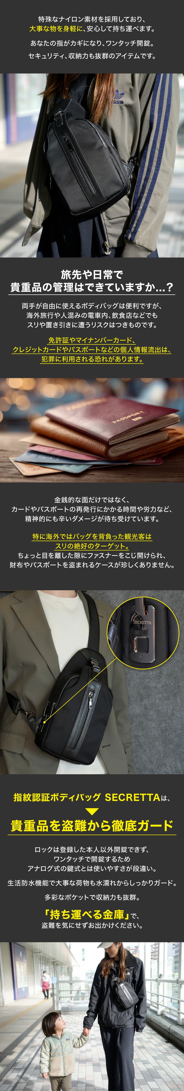 - 【あなたの指がカギになる】まるで持ち運べる”超軽量金庫”。ワンタッチで開く指紋認証ボディバッグ