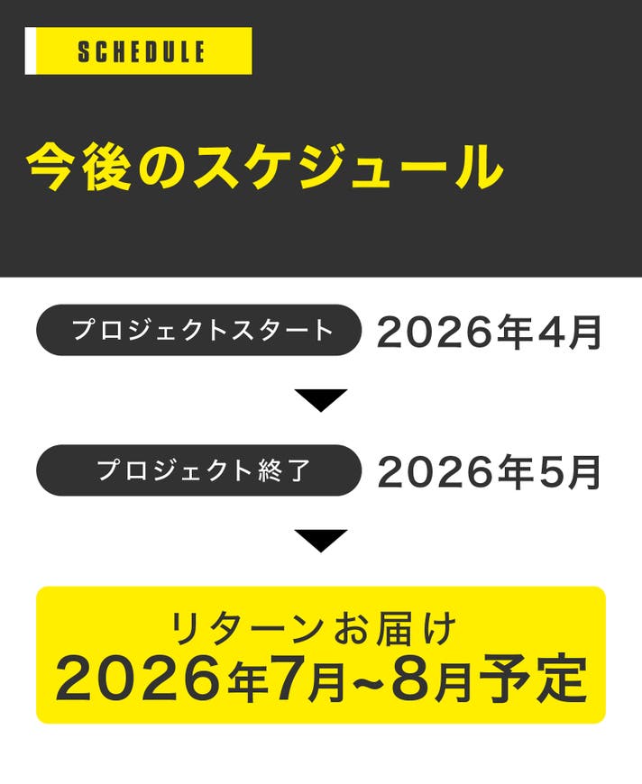このプロジェクトはAll in型です。目標金額の達成に関わらず、プロジェクト終了日の2026年05月30日までに支払いを完了した時点で購入が成立します。
