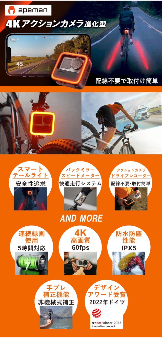 欧米で数多くのアクションカメラやドライブレコーダーなどの販売実績をもつapemanが自転車走行時にも活躍するアクションカメラを新しく開発しました。