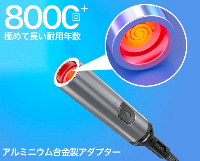 本製品は丈夫でキズがつきにくいアルミニウム合金を採用しています。頑丈で耐久性があり、耐用年数も長く、8000回以上着火できます。