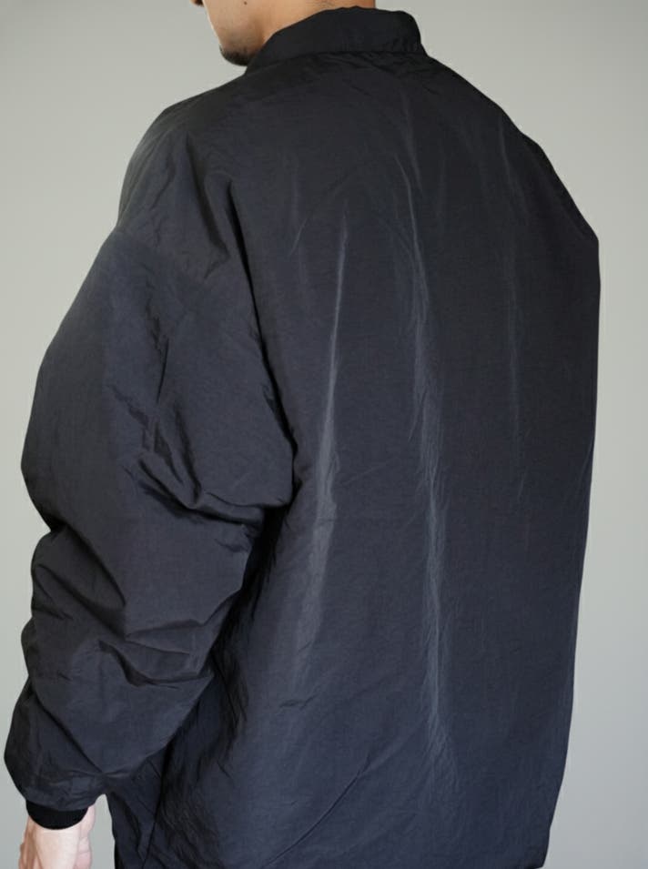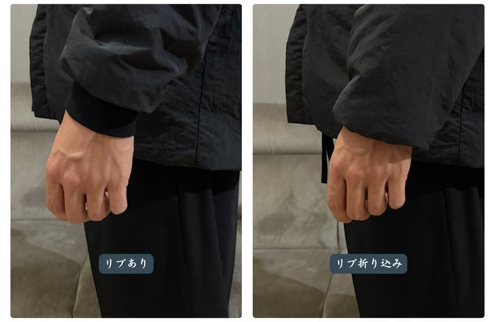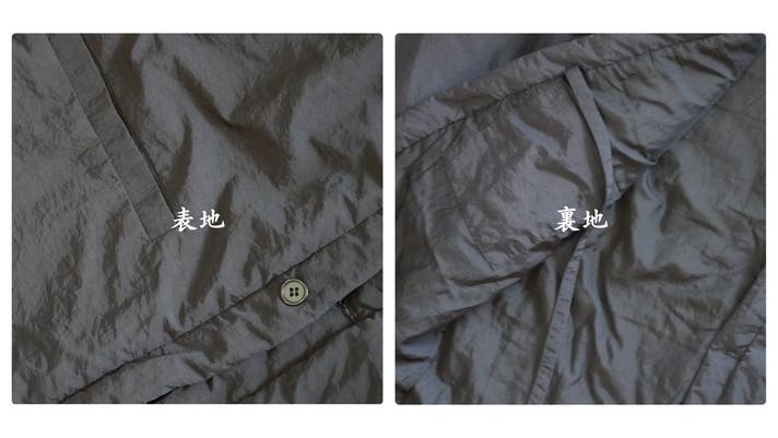 市場のナイロンジャケットは硬くてゴワつくものが多いですが、「パフ半纏」は肌着のような触り心地の裏地と組み合わせることで、快適な着心地を実現しました