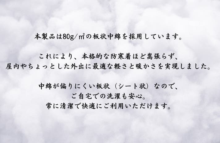 ....「外出用の中綿ジャケットは重くてゴワつき、家では着られない」