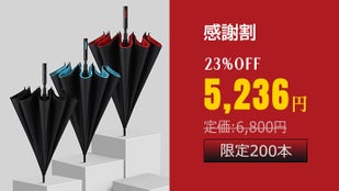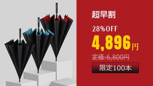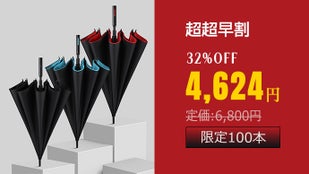 特に梅雨や台風の季節には、折りたたみ傘よりしっかりした大きな傘が適しています。そこで、役に立つのが20本の傘骨と強固なボディをもつ超耐風・超大型の折れない傘