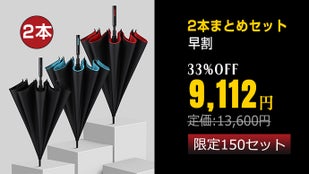 【限定150セット 早割 33%OFF】20本骨耐風雨特製二重傘×2