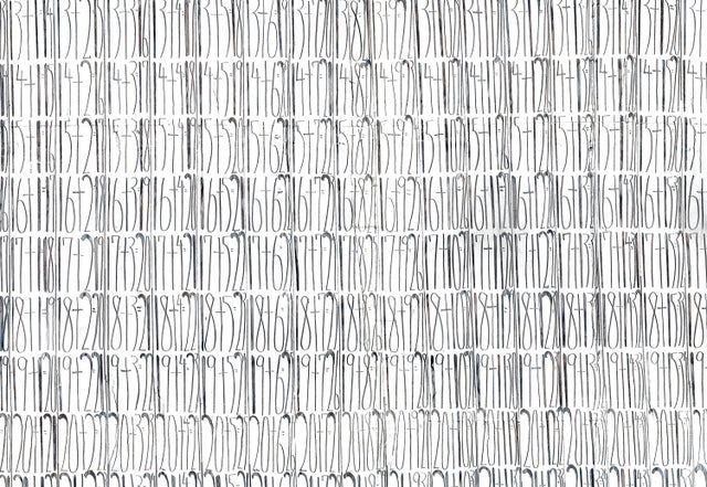 脅威の集中力で描かれる計算式は、バーコードのような細長い独特な配列が美しいデザイン、まるでアートのように見えます。
