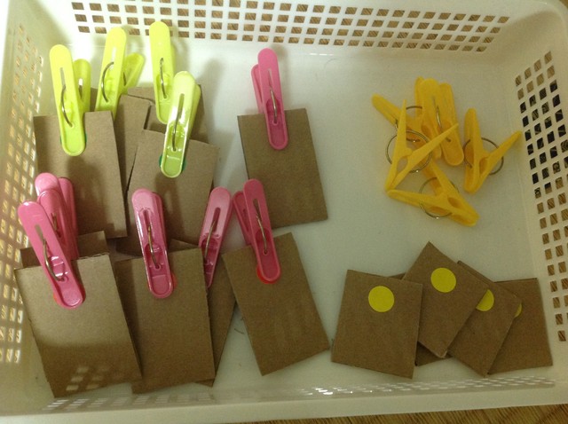 洗濯ばさみを留める課題。