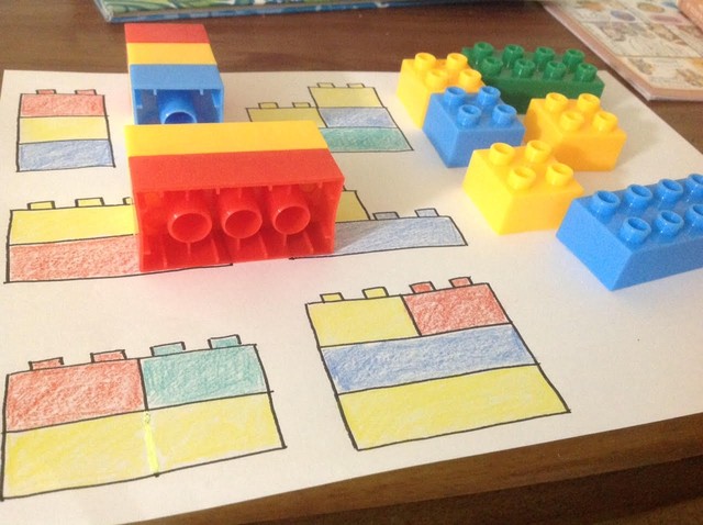 見本と同じものを組み立てる練習教材。