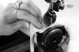 甲のモカ編みは熟練の職人が一針、一針、手縫いをしています。