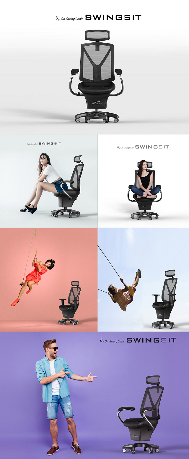 SWINGSIT「スイングシット」はコア(下腹部)を効果的に動かせるように設計しました。 また、無騒音、無振動、無電力、無電動システムで音も発生しません。SWINGSIT「スイングシット」は、高級事務用椅子が与える安楽さとアクティブ·シーティング·チェアが持つすべてのメリットを提供する人体工学的デザインとして設計しました。