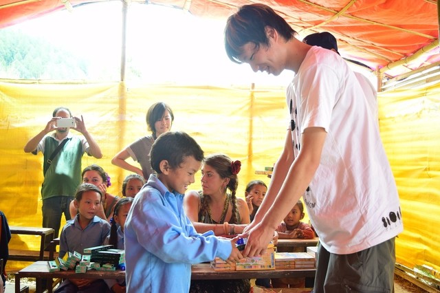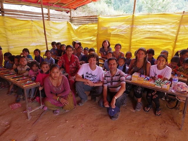 また、ネパールの支援が未だ行き届いていない山の中にある学校に文房具を届けました。