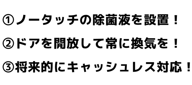 ※オープンから3ヶ月程度で電子マネー決済・QRコード決済を導入して完全非接触を実現予定