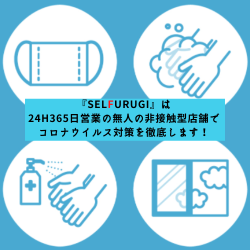 『SELFURUGI』は無人で店員がいないので、24時間365日営業になります。