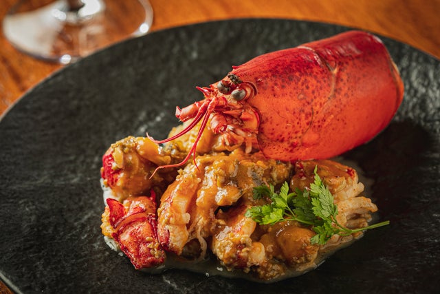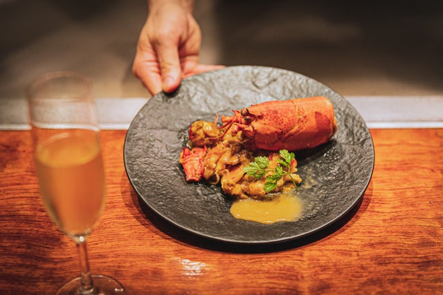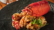 「オマール海老」は鉄板の上でソテーしたものに、シェフの手作りソースをかけて召し上がっていただきます。