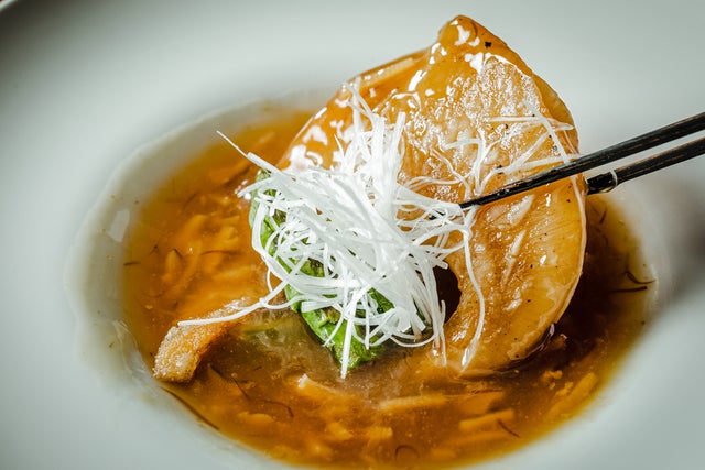 どれも、シェフの自信作であり、それぞれに固定ファンがついているのですが、あえて初めてのお客様にお伝えするなら、「見た目のインパクトならオマール海老」「食感に感動したいならあわび」「未体験のおいしさを味わうならふかひれ」をお勧めします。