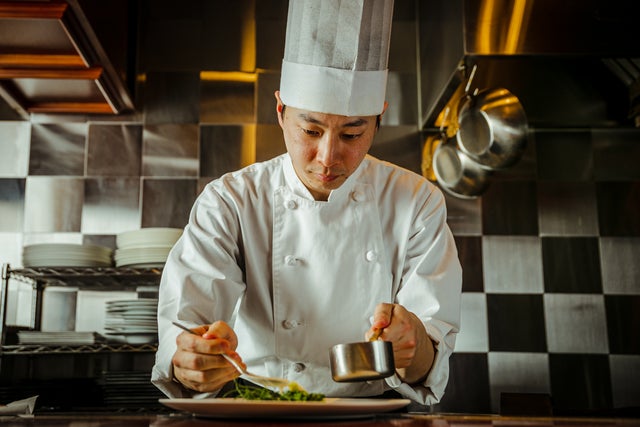 「難題になればなるほど、料理人としてのたましいが燃える」と語るシェフ。