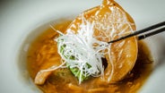 それから「ふかひれ」は、肉厚の気仙沼産を使い、軽く蒸しあげてから、片栗粉をつけてお客様の前で揚げ焼きに。