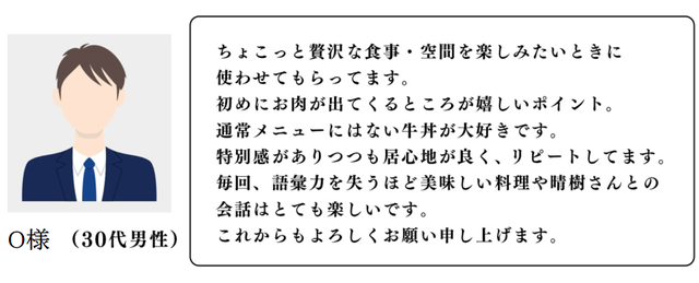 プライベート利用だけでなく、ビジネスでの利用も多く、経営者や役員などが接待や会食など、「ここぞ」という時に使うことも。
