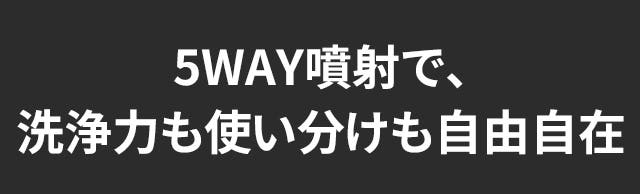 2段階の水圧調整に加え、5in1ノズルで水流角度も自在に変更。
